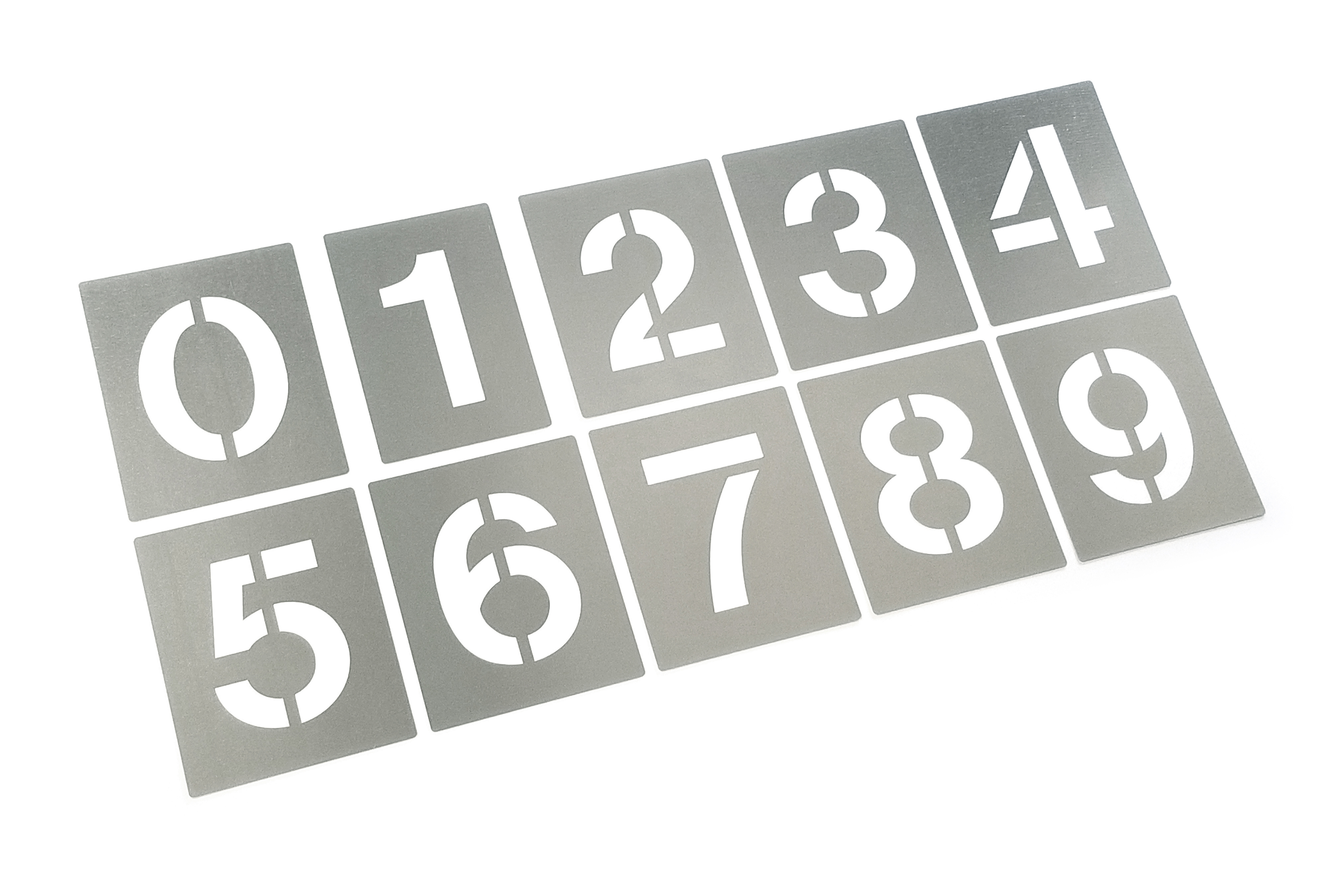 リーズナブルな《折り返し無し》 ステンシルプレート【 文字サイズH250/数字0~9 各1枚 】10枚セット